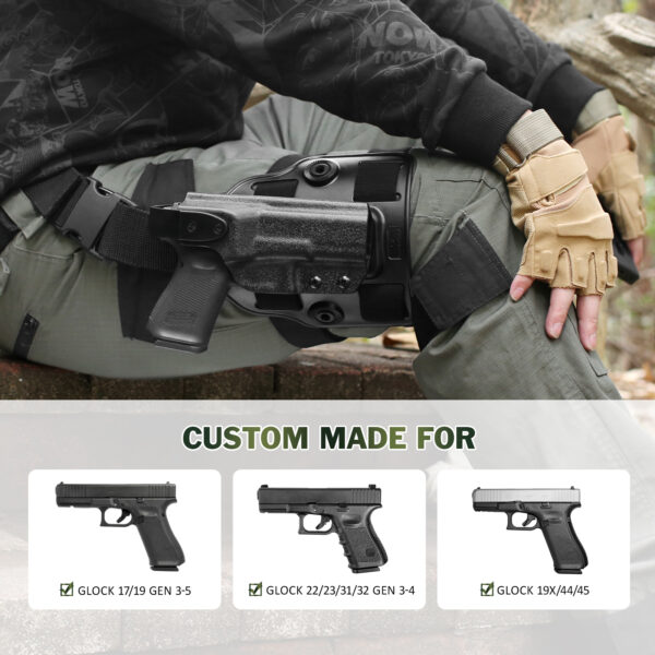 GUN & FLOWER Drop Leg Holster, Fits Glock G17 Gen3-5 G19 Gen3-5 G19X G23 Gen3-4 G26 Gen3-5 G32 Gen3-4 G34 Gen3-5 G44 G45, Level II Retention Duty Kydex Pistol Holster, Adjustable Strap & Ride Hight, Right Hand