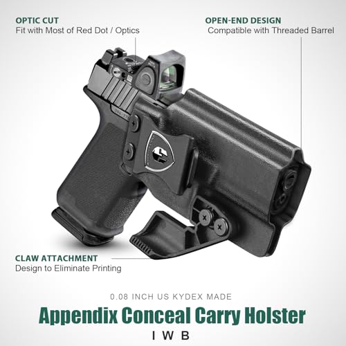 WARRIORLAND IWB Kydex Holster Compatible with Glock 17/19/26 Gen3-5、Glock 17/19 Gen 4-5 MOS、Glock 34, Inside Waistband Appendix Conceal Carry, with Claw & Adj. Retention & Cant, Right Hand