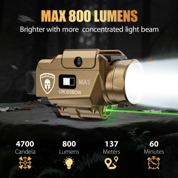 WARRIORLAND MB3 Pistol Light and Custom Kydex Holster, Fit for Sig P320 Full Size & P320-M17, Compact 500 Lumens Universal Rail Mounted Tactical Light with Green Laser & White LED, Power Indicator