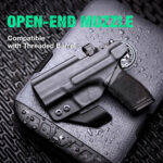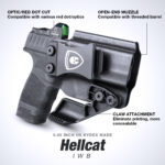 - COMPENSATOR & OPEN MUZZLE CUT – Springfield hellcat holster can accommodate with various compensators – Over-Cut open muzzle accommodate with threaded barrel