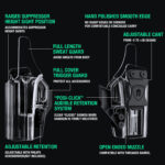 - FULL LENGTH SWEAT GUARD & ‘POSI-CLICK’ AUDIBLE SYSTEM: Full length sweat guard can prevent sweat towards your pistol – You can hear clear “CLICK” sound when firearm was firmly holstered