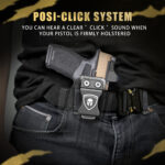 - POSITIVE AUDIBLE “CLICK” LOCK SYSTEM: When holster retention is well customized, you would hear clear “click” sounds when your handgun is firmly holstered