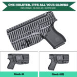 - This Concealed Carry Carbon Fiber Holster is custom for Glock 43/43X; Not fit for any laser or light attachment;