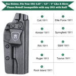 - This Kydex Holster is custom for Colt/ Kimber/ Springfield/ S&W/ Ruger/ Taurus/ Rock Island and More 1911 .45 ACP Pistol No Rail; It can also compatible with 4.5” or 4.25” barrel, if you can accept holster are longer than the short barrel(you can also cut some off and polish edge).