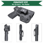 - 【Posi-Click Audible Retention Lock System, Fits Like A Glove】 The IWB holster M&P Shield .40 w/TLR-6 possess Posi-Click Audible Retention Lock system, you would hear a “click” sound when your pistol is firmly seated