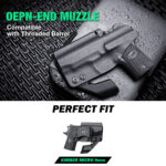 - COMPENSATOR & OPEN MUZZLE CUT – Micro 9 holster iwb can accommodate with various compensators – Over-Cut open muzzle accommodate with threaded barrel
