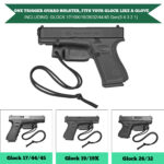 - 【15 Inch Durable PP Material Paracord】 With 15 inch paracord, you can attach it secure on belt, belt loop, nightstand, inside of a bag or purse, inside of a car, and more. Pull with strength, trigger guard would remove from your firearm