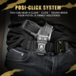 - POSITIVE AUDIBLE “CLICK” LOCK SYSTEM: When holster retention is well customized, you would hear clear “click” sounds when your handgun is firmly holstered