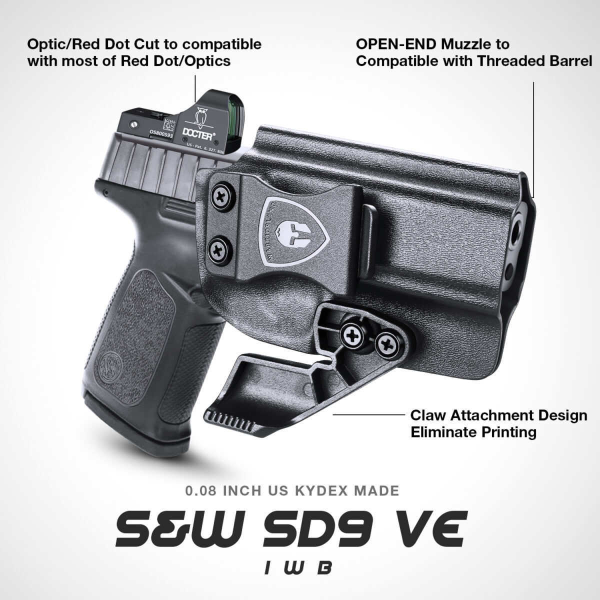 - Kydex Claw wing makes it closer to your body, reduces printing and increases concealment when carrying (equipped with extra screws for no claw style carry);
