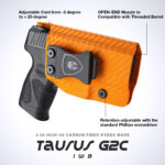 - COMPENSATOR & OPEN MUZZLE CUT – Taurus G2C IWB holster can accommodate with various compensators – Open muzzle end accommodate with threaded barrel