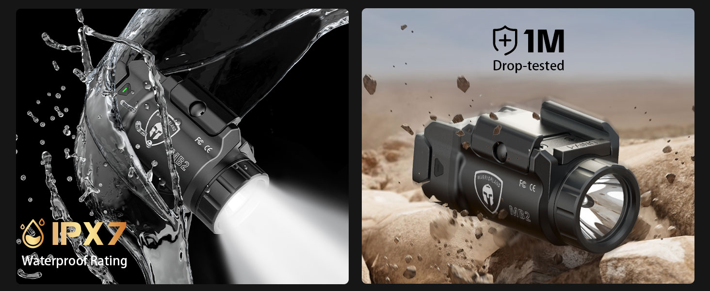 - High-Performance LED Technology: Equipped with a powerful LED that provides 500 lumens of brightness and a lifespan of up to 50,000 hours, the WARRIORLAND MB2 is designed for long-lasting use. The light comes with a CR123A battery (3.0V, 1600mAh) for extended runtime 120 minutes. Note: DO NOT look directly at the light.