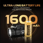 - High-Performance LED Technology: Equipped with a powerful LED that provides 500 lumens of brightness and a lifespan of up to 50,000 hours, the WARRIORLAND MB2 is designed for long-lasting use. The light comes with a CR123A battery (3.0V, 1600mAh) for extended runtime 120 minutes. Note: DO NOT look directly at the light.