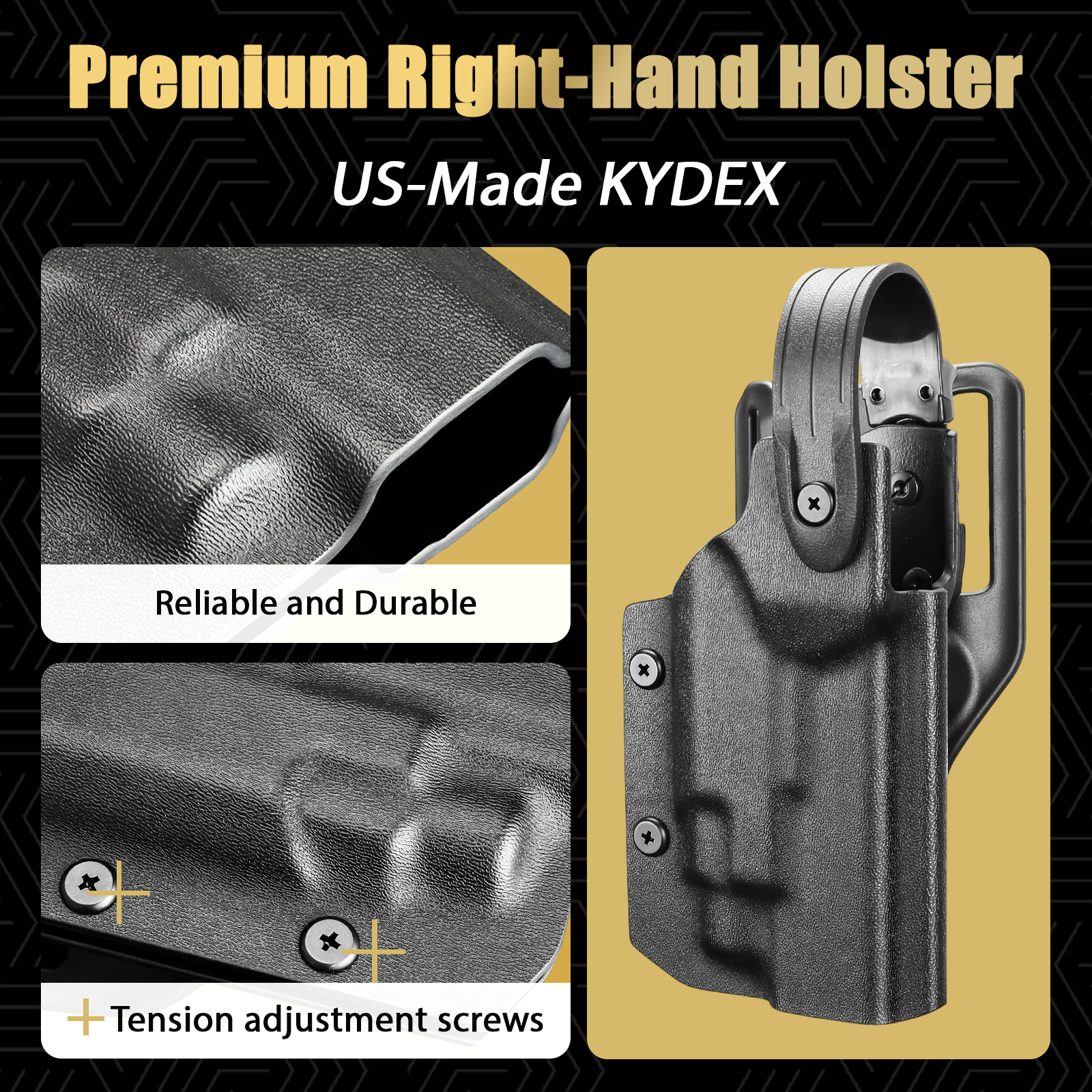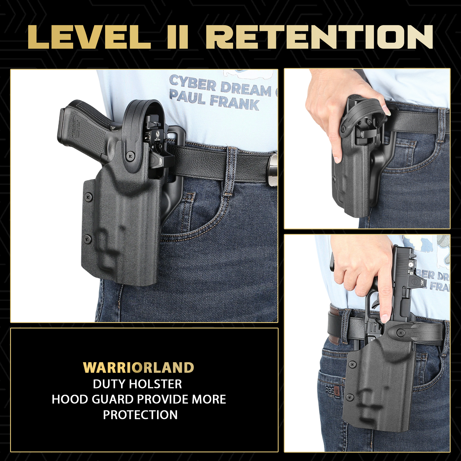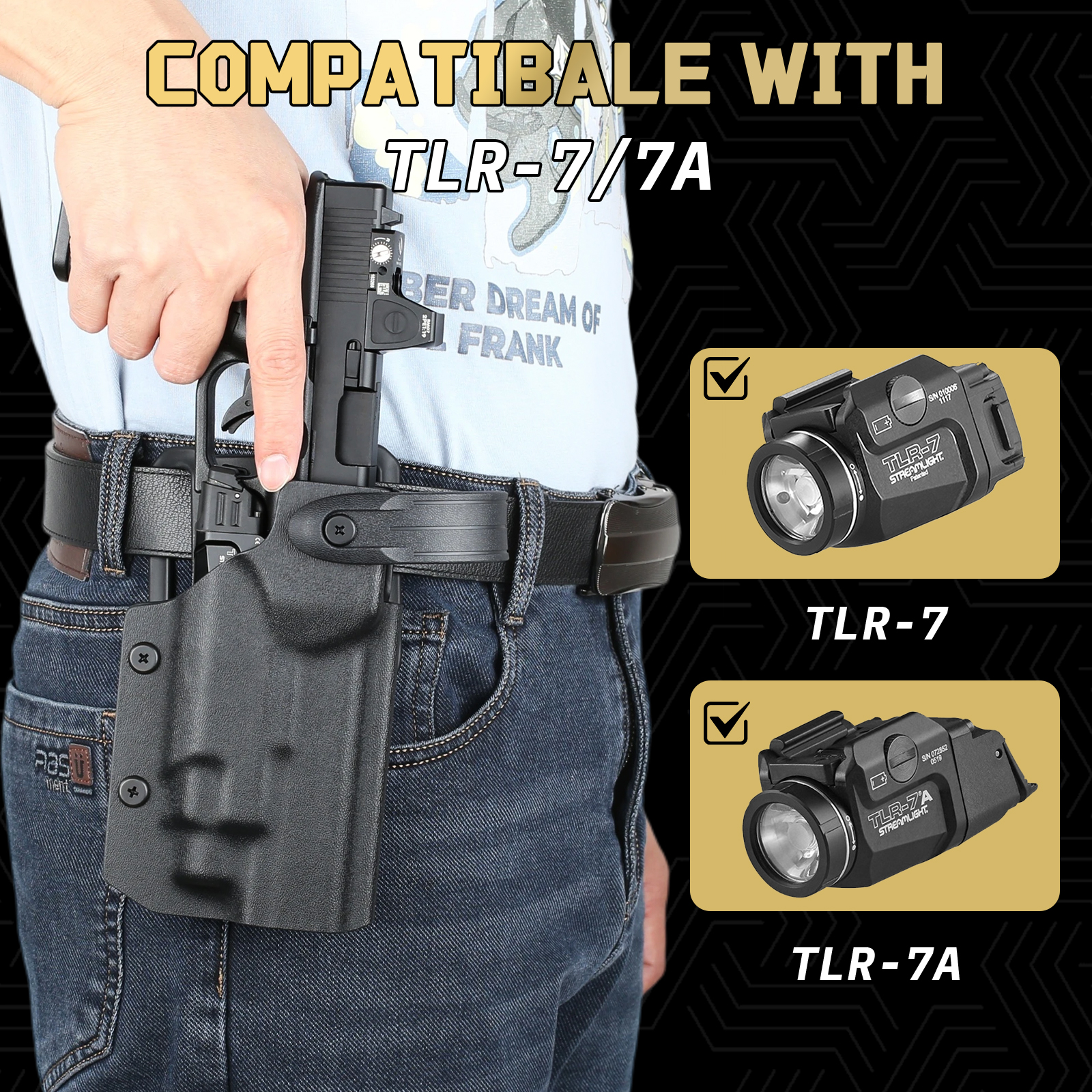 WARRIORLAND Adjustable Kydex Holster for Glock 17/19/34/19X/44/45 with TLR-7/TLR-8 Light & Optic Cut – Thumb Release, Mid-Ride 2.0″ Belt Loop, Custom Fit