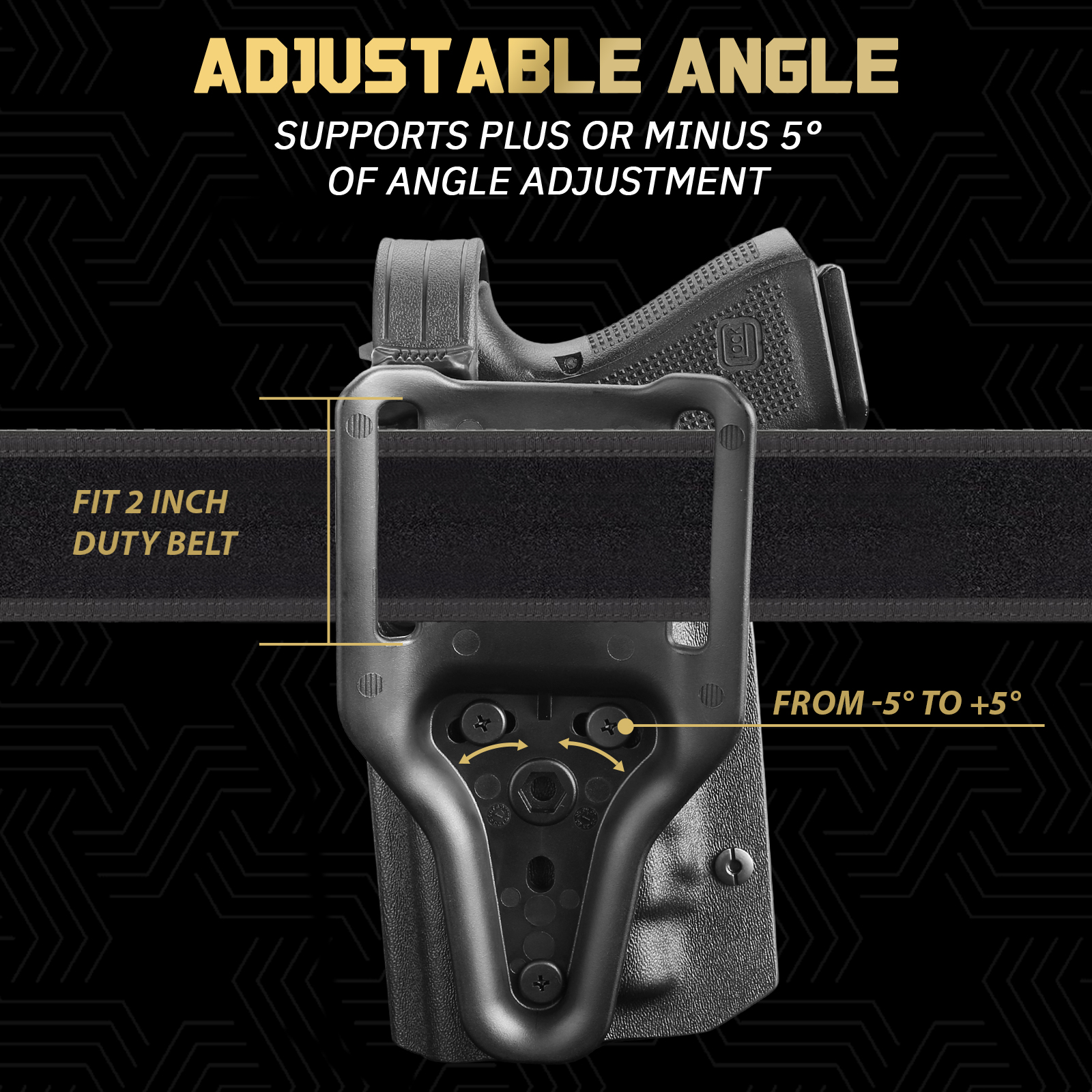 Features a 2.0″ mid-ride belt loop for balanced draw height and ±5° cant adjustment for personalized comfort and carry efficiency.