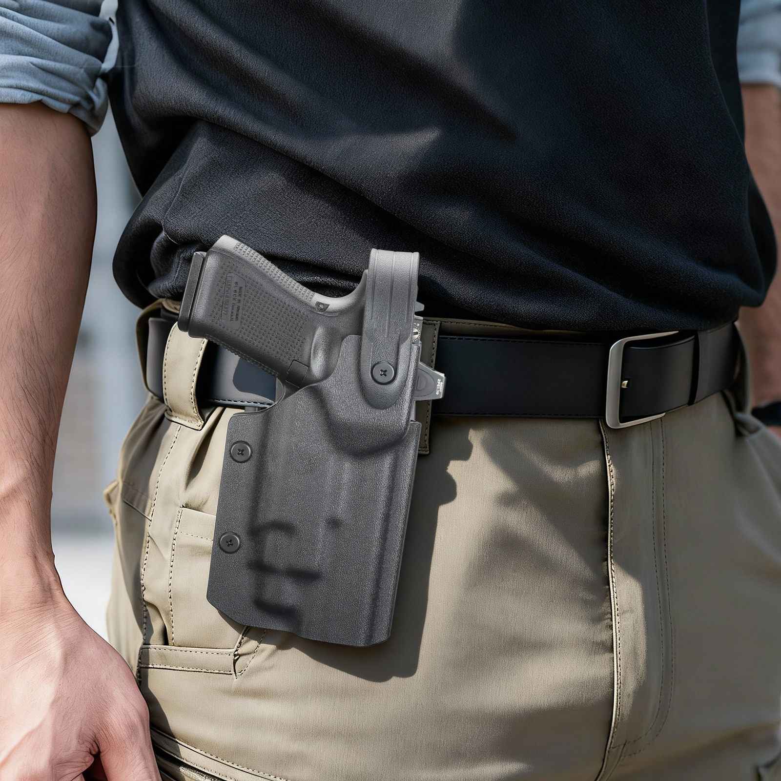 Be the first to review “WARRIORLAND Adjustable Kydex Holster for Glock 17/19/34/19X/44/45 with TLR-7/TLR-8 Light & Optic Cut – Thumb Release, Mid-Ride 2.0″ Belt Loop, Custom Fit” Cancel reply