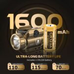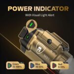 - 𝗦𝗲𝗰𝘂𝗿𝗲 𝗜𝗻𝘀𝘁𝗮𝗹𝗹, 𝗔𝗱𝗷𝘂𝘀𝘁𝗮𝗯𝗹𝗲 & 𝗟𝗼𝗻𝗴 𝗥𝘂𝗻𝘁𝗶𝗺𝗲 – Tool-secure rail clamp allows fast mounting. Dual ambidextrous switches give easy right-/Left-hand control. Adjustable laser improves precision. Powered by 1 CR123A battery, runtime ranges 110–420 min with battery indicator for readiness
