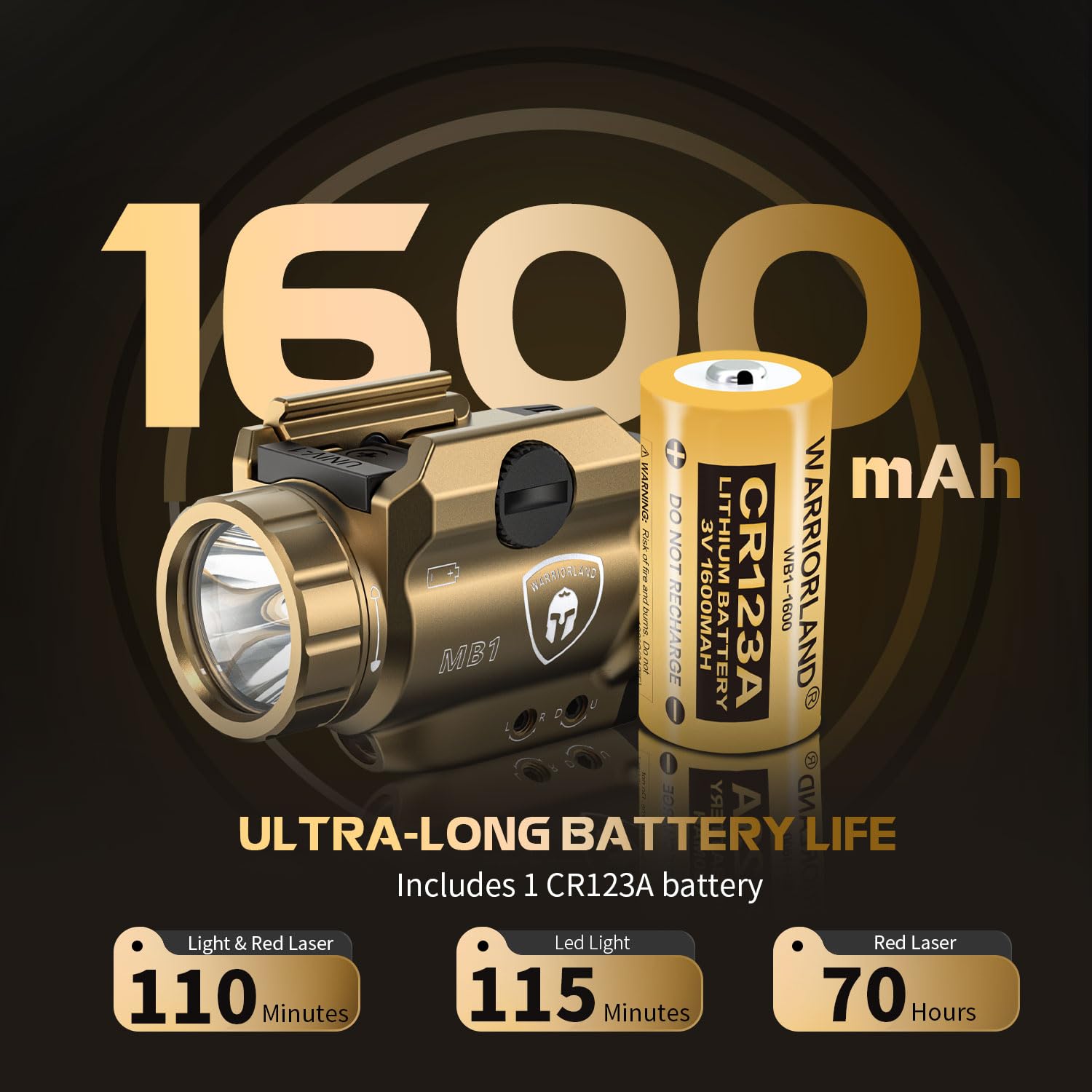 - 𝗪𝗵𝗮𝘁 𝗬𝗼𝘂 𝗚𝗲𝘁 – 1 * WARRIORLAND FDE MB1 Universal Rail Mount Weapon Light, 1* G21 Kydex Holster (Used for Listed models with MB1 attached), 1 * User Manual, 1 * CR123A Battery, 6 * Rail Keys, 1 * Allen Key,1 * Screwdriver