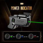- Battery Indicator & Power Efficiency: It is the first laser to include power indicator to help you always get ready for tactical events and protection. 2 x CR1/3N batteries run for 160 minutes. The indicator shows Green when the battery level is at 70%-100%, Blue at 20%-70%, Red at 0-20%