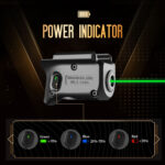 - Battery Indicator & Power Efficiency: It is the first laser to include power indicator to help you always get ready for tactical events and protection. 2 x CR1/3N batteries run for 160 minutes. The indicator shows Green when the battery level is at 70%-100%, Blue at 20%-70%, Red at 0-20%