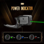 - Battery Indicator & Power Efficiency: It is the first laser to include power indicator to help you always get ready for tactical events and protection. 2 x CR1/3N batteries run for 160 minutes. The indicator shows Green when the battery level is at 70%-100%, Blue at 20%-70%, Red at 0-20%