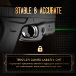 - Quality Trigger Guard Laser: Constructed with durable and impact-resistant polymer. Class IIIa Laser, output less than 5mW peak, wavelength 510-530nm, green laser visible at 50 feet distance (Does not exceed Class IIIa emission limits)