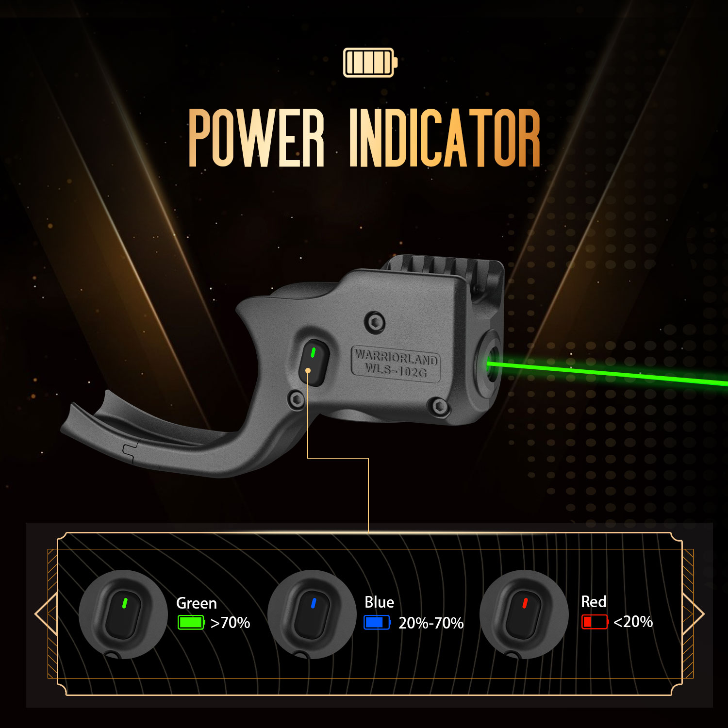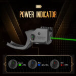 The first laser sight on the market with a power indicator, always get ready for tactical events and protection. The indicator shows Green when the battery level is at 70%-100%, Blue at 20%-70%, Red at 0-20%.