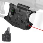 - 𝗩𝗲𝗿𝘀𝗮𝘁𝗶𝗹𝗲 𝗜𝗹𝗹𝘂𝗺𝗶𝗻𝗮𝘁𝗶𝗼𝗻 𝗢𝗽𝘁𝗶𝗼𝗻𝘀: Laser only, led light only, or both combined, and an optional LED strobe mode activated by double-pressing either side switch — A quality 510–530nm red laser at <5mW (CLASS IIIa) and an 150-lumen LED with a 50,000-hour lifespan, this combo provides precision and reliability in various applications