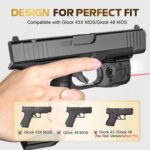 - 𝗖𝗼𝗺𝗽𝗮𝘁𝗶𝗯𝗶𝗹𝗶𝘁𝘆: WARRIORLAND SLL-100 / G43Xmos trigger-mount laser light & custom IWB Conceal Carry Holster,designed exclusively and solely for Glock 43X MOS, not fits Glock 43 / 43X. Compact and lightweight light (1.1 OZ), it securely integrates into the trigger guard perfectly for better shooting performance, and the right-hand holster supports optics/ red dots installed and fits like a glove for daily conceal carry