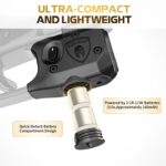 - 𝗟𝗶𝗴𝗵𝘁𝘄𝗲𝗶𝗴𝗵𝘁 𝗮𝗻𝗱 𝗗𝘂𝗿𝗮𝗯𝗹𝗲 𝗖𝗼𝗻𝘀𝘁𝗿𝘂𝗰𝘁𝗶𝗼𝗻: Built with a lightweight, impact-resistant polymer housing, this pistol light offers durable performance without compromising firearm handling, even in demanding conditions