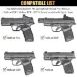 - Fit First — Right-hand IWB holster delivers a secure, custom fit for Springfield Hellcat Pro / Hellcat / Hellcat RDP / Hellcat OSP, ensuring reliable retention and a smooth draw