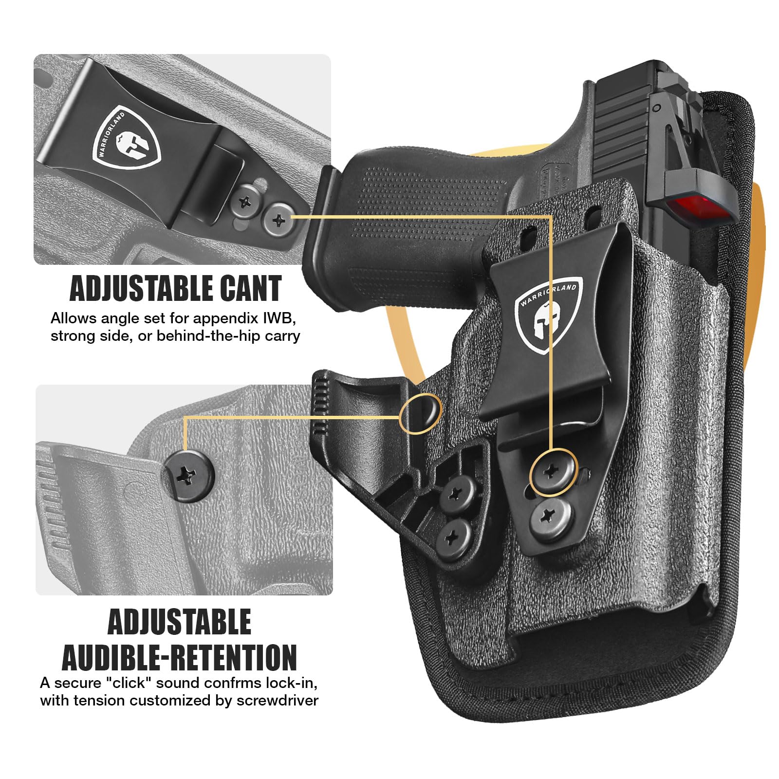 Compatibility First → This IWB right-hand holster is precision-shaped to fit Glock 43, 43X, 43X MOS, 48 and 48 MOS, delivering secure retention and a fluid draw.