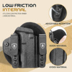 - 【LOW FRICTION INTERNAL MATERIAL】The microfiber backing is made of soft material, which allows for smooth and quite operation of holster. This prevents damage to your firearm as well as allowing you to dictate the circumstances around drawing and holstering your firearm.