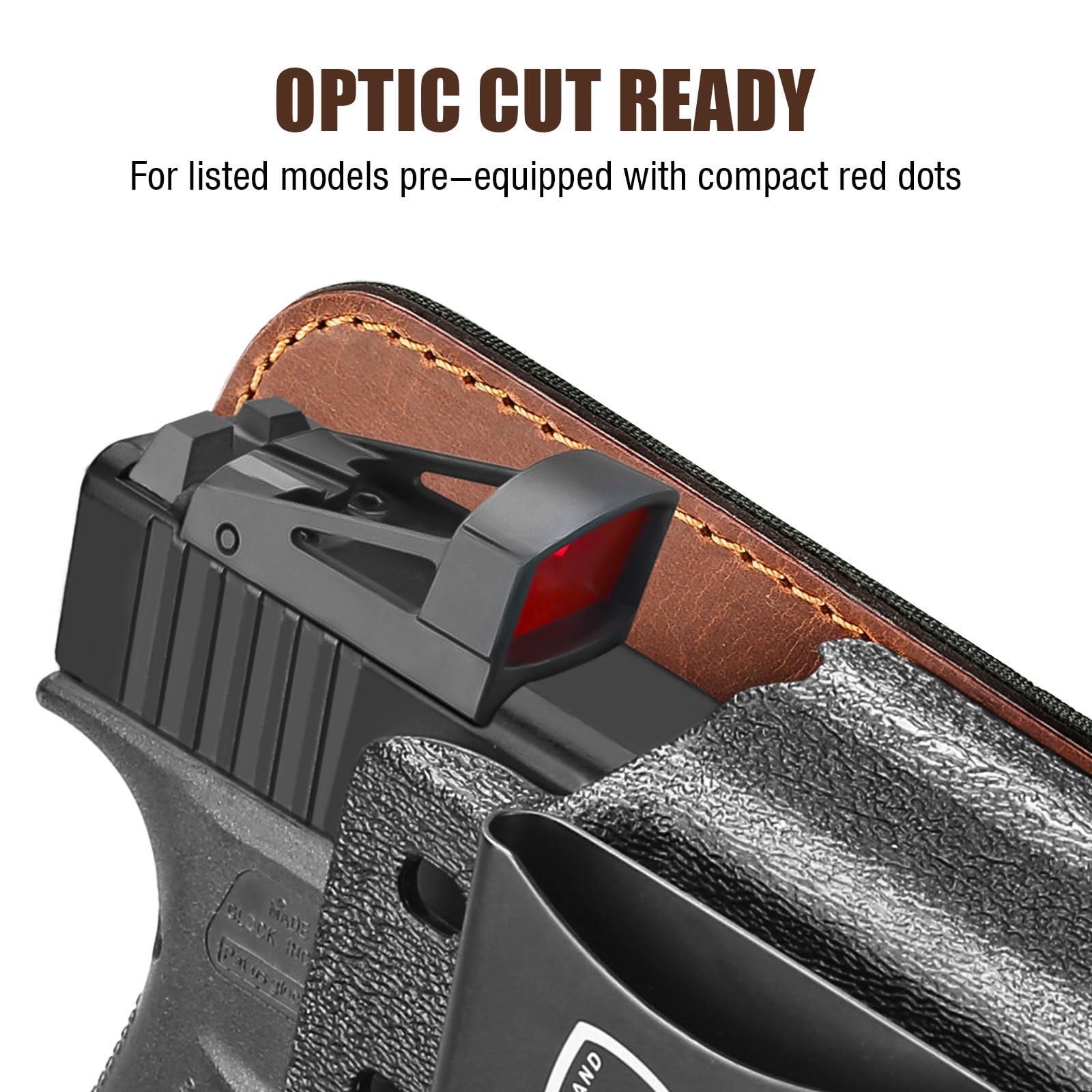 Optic Ready & Compensator Compatible – Supports compact/micro red-dot optics. Open-ended bottom allows use with pistols equipped with compensators or threaded barrels.