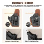 Hybrid Comfort & Finish Protection – Durable Kydex-style polymer shell combined with breathable, multi-layer nylon and leather backing for maximum comfort and superior firearm protection.