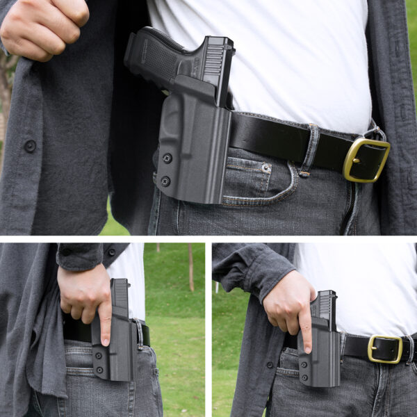 - 【LOW FRICTION INTERNAL MATERIAL】The microfiber backing is made of soft material, which allows for smooth and quite operation of holster. This prevents damage to your firearm as well as allowing you to dictate the circumstances around drawing and holstering your firearm.