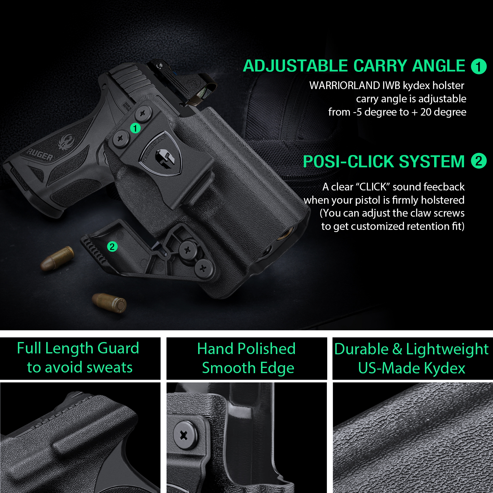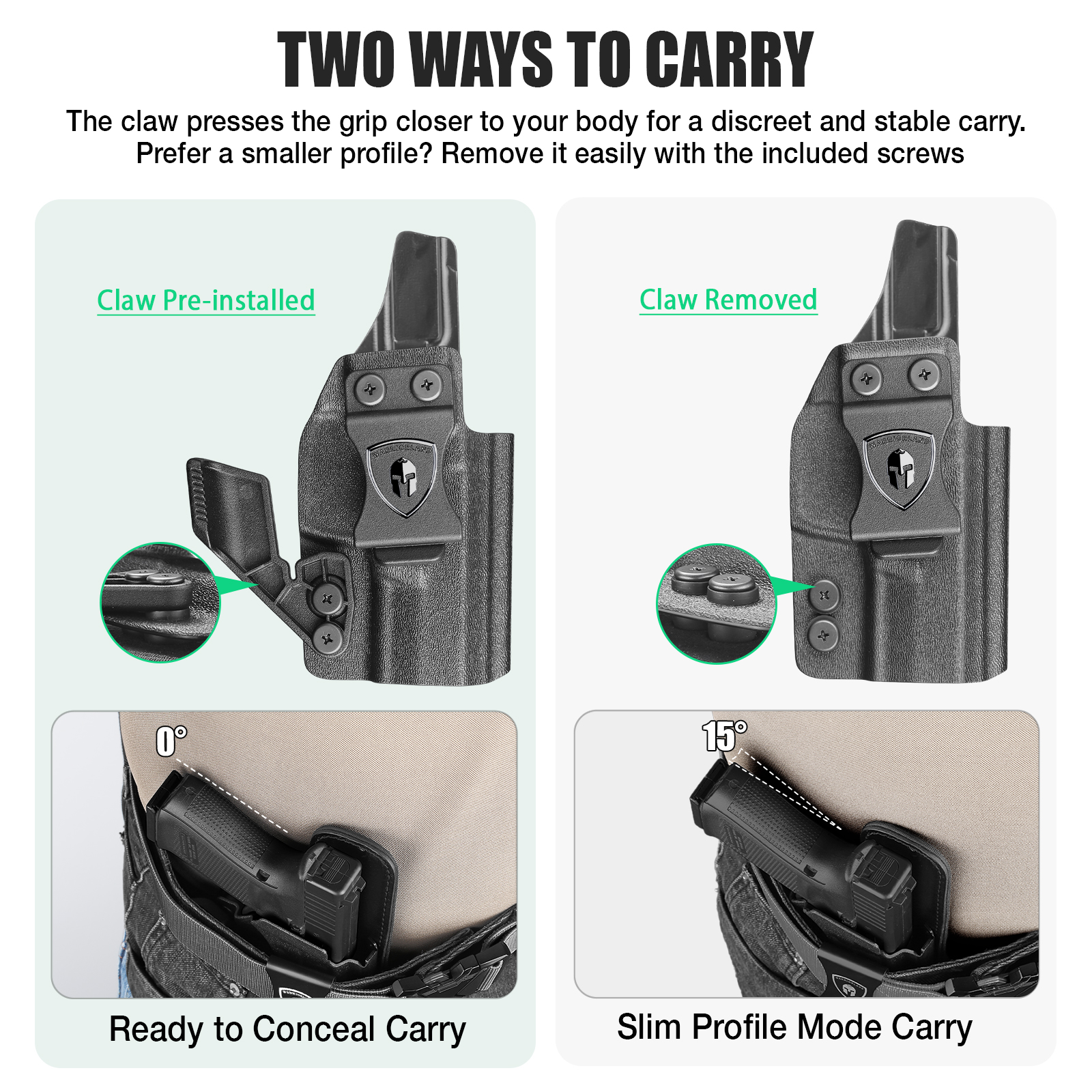 Flexible Carry Angle Options – Cant angle can be adjusted from -5° to +20°, supporting appendix, strong-side, or behind-the-hip carry positions. Right-hand configuration only.