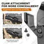 - Optic Cut & Concealment Claw: Features an optic cut to accommodate a wide variety of red dot sights. The included concealment claw reduces printing, making the holster more discreet and comfortable for concealed carry. Includes extra screws for claw-free carry options.