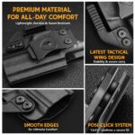 - Premium USA-Made 0.08″ Kydex Construction – Crafted from durable and lightweight 100% USA-made 0.08″ Kydex, this holster delivers unmatched durability and reliability, providing superior protection for your firearm.