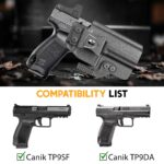 - 𝗣𝗿𝗲𝗰𝗶𝘀𝗲 𝗙𝗶𝘁 𝗳𝗼𝗿 𝗧𝗣𝟵𝗦𝗙 / 𝗧𝗣𝟵𝗗𝗔 – This inside-the-waistband Kydex holster is precision-formed for the Canik TP9SF / TP9DA, providing a secure lock-in, consistent retention, and excellent concealment.