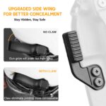 - 𝗧𝘂𝗻𝗮𝗯𝗹𝗲 𝗥𝗲𝘁𝗲𝗻𝘁𝗶𝗼𝗻 & 𝗣𝗼𝘀𝗶𝘁𝗶𝘃𝗲 𝗖𝗹𝗶𝗰𝗸 – Adjustable retention screw lets you fine-tune hold strength, while the POSI-CLICK mechanism delivers a crisp “click” to confirm your firearm is fully seated.