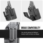 - Widely Used: This polymer Mono-Block Belt Clip is designed to fit a wide range of holsters(fit for Glock,SIG Sauer,Smith & Wesson,Ruger,Springfield Armory), mag pouches, knife sheaths, wallets, and more. Whether you’re carrying a firearm, a knife, or other essential items, this belt clip can accommodate your needs. Its versatile design allows you to easily switch between different holsters or sheaths without having to purchase multiple belt clips.