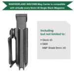 - 【Please Noted】 4 Models Optional, Please Select Right Magazine Holster. 1: 9mm/.40 double stack mag holster; 2: 9mm/.40 single stack mag holster; 3: .45 ACP single stackmag holster;4: .45 ACP double stack mag holster. Our this option is for 9mm/.40 double stack mag holster