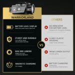 - 𝗜𝗻𝘁𝗲𝗴𝗿𝗮𝘁𝗲𝗱 𝗥𝗲𝗰𝗵𝗮𝗿𝗴𝗲𝗮𝗯𝗹𝗲 𝗕𝗮𝘁𝘁𝗲𝗿𝘆 𝗗𝗲𝘀𝗶𝗴𝗻: Equipped with a 500mAh magnetic USB rechargeable lithium-ion battery, it delivers 55 to 900 minutes of runtime based on the selected light mode, and fully recharges in just 90 minutes