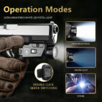 - 𝗛𝗶𝗴𝗵-𝗣𝗲𝗿𝗳𝗼𝗿𝗺𝗮𝗻𝗰𝗲 𝗟𝗘𝗗 𝗜𝗹𝗹𝘂𝗺𝗶𝗻𝗮𝘁𝗶𝗼𝗻: Equipped with an 800-lumen LED, this compact rail-mounted light offers exceptional brightness and versatility, featuring four modes: Momentary-on, Constant-on, Moonlight, and Strobe, suitable for any tactical or everyday application
