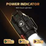 - Lightweight and Portable Design: This tactical weapon light is compact and lightweight, featuring ambidextrous controls and a forward activation button for quick access. The built-in power indicator provides real-time battery status, making it user-friendly.