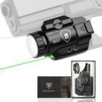 - 𝗩𝗲𝗿𝘀𝗮𝘁𝗶𝗹𝗲 𝗟𝗶𝗴𝗵𝘁𝗶𝗻𝗴 𝗠𝗼𝗱𝗲𝘀: This combo light offers three selectable modes: white light, green laser, or both combined. An optional strobe mode can be activated by double-pressing either side switch, providing flexibility for tactical, or low-light applications