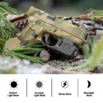 - 4 DIFFERENT LIGHT MODES – Tactical Light Mode / Constant Light Mode / Strobe Mode / Moonlight Mode