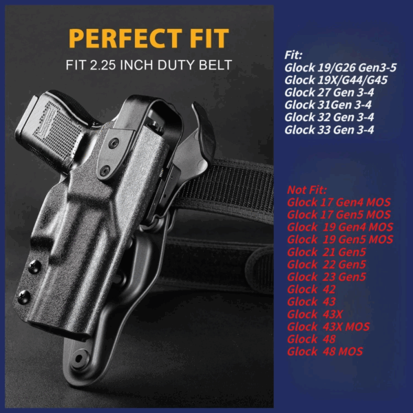 WARRIORLAND Duty Holster Level II Retention w/Hook Guard & Rotating Hood Compatible with Glock 19 19X 44 45 Gen 3 4 5 & G23 32 Gen 3 4