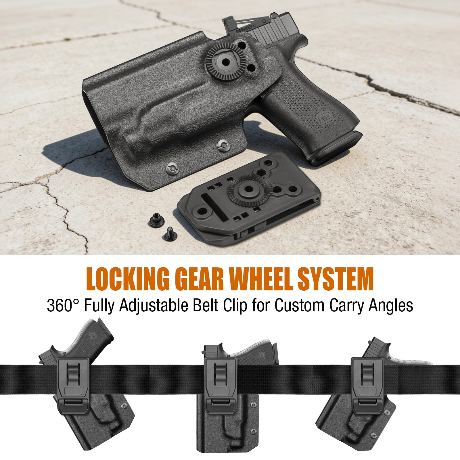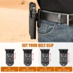 - 𝘍𝘶𝘭𝘭-𝘙𝘰𝘵𝘢𝘵𝘪𝘰𝘯 𝘉𝘦𝘭𝘵 𝘊𝘭𝘪𝘱 – Compatible with 1.5” / 1.75” / 2.0” / 2.25” belts, the belt clip rotates 360 degrees for flexible positioning and personalized OWB carry angles.