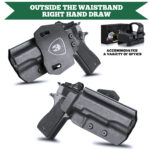 - 【Optic Cut】 Colt 1911 4.25″/4.5″/5″ holster accommodates variety of optics, Over-Cut Open muzzle allows threaded barrels pass through
